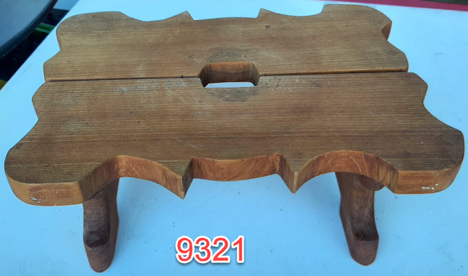 9321: Schemel, Fichte, hellbraun, lasiert, schwer, stabil. Masse: 34 x 24.5, Höhe 14.5 cm; Preis: 39 Franken